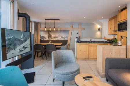 Der hohe Ausbaustandart, die vollständig ausgestatte Wohnküche sowie der helle Wohnbereich garantieren einen unvergesslichen Aufenthalt. Die nach Süden gerichtete Sonnenterasse mit Blick aufs Matterhorn lädt zum Entspannen und Erholen inmitten der prachtvollen Zermatter Bergwelt ein.